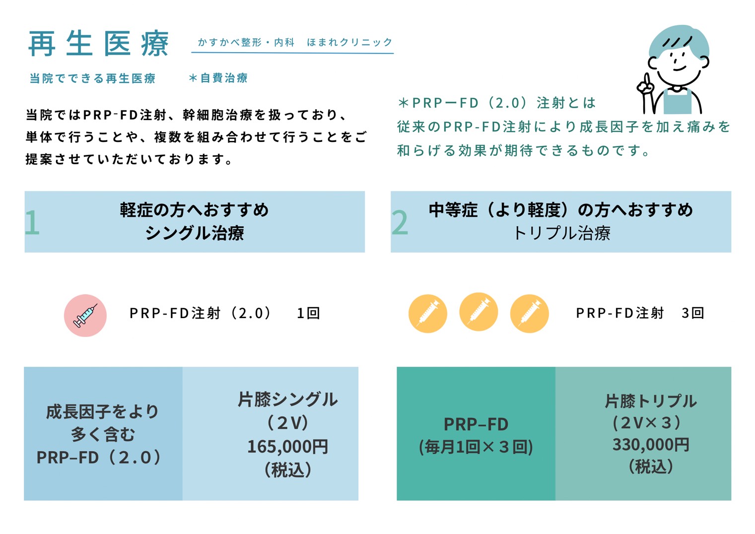 「自分には効果があるのだろうか?」や、「費用はどれくらいかかるのだろう?」などご興味のある方やご質問のある方は、整形外科の診察時にお気軽にご相談ください。