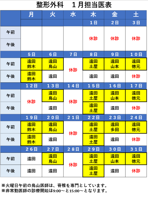 勤務が変更になる可能性もございますので、ご確認の上、ご来院いただけますようお願い申し上げます。